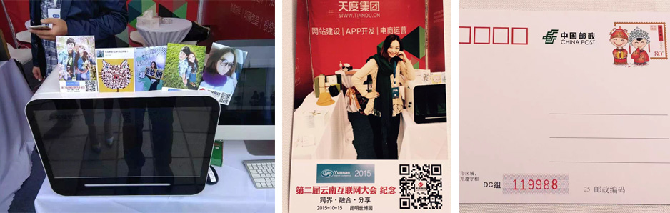 天度集團作為云南本土很大的互聯(lián)網(wǎng)服務企業(yè),在本次參展中,向業(yè)界展示了“互聯(lián)網(wǎng)+”系列服務及產(chǎn)品,并聯(lián)合云南省郵政局展示了“互聯(lián)網(wǎng)+郵政”的系列應用。在本次大會中,天度集團參展展位為大會嘉賓免費提供了“第二屆云南省互聯(lián)網(wǎng)大會紀念”個性化明信片打印,并取得廣泛關(guān)注和好評。