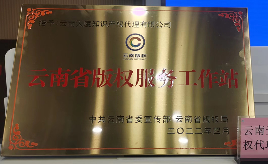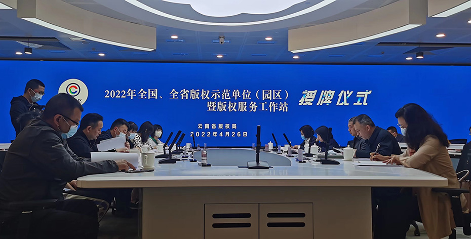 2022年全國、全省版權示范單位(園區(qū))暨版權服務工作站授牌儀式今日舉行,云南天度知識產權代理有限公司等10家企業(yè)獲的“云南省版權服務工作站”授牌。