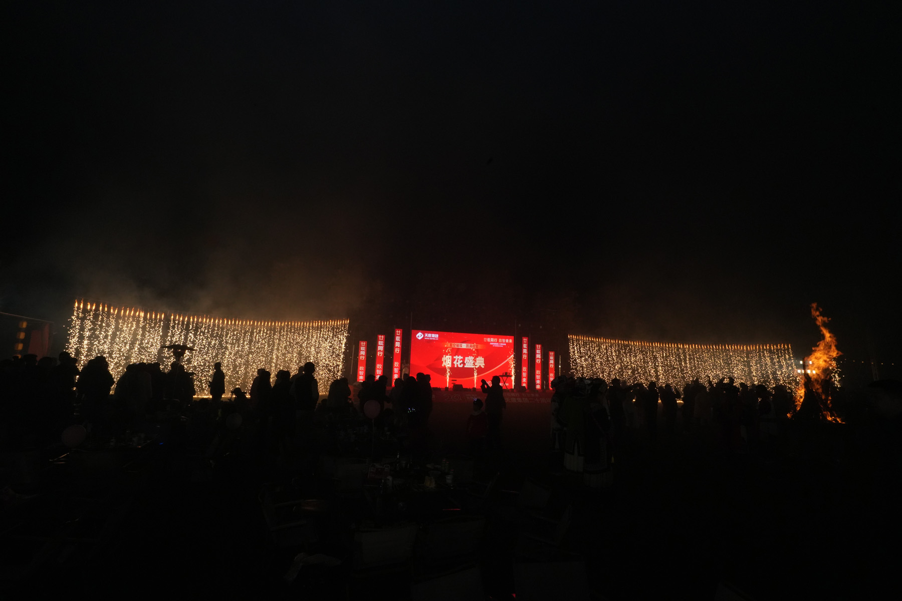 晚上七點(diǎn)半,伴隨主持人倒數(shù),一束束流光劃破夜空,絢麗的煙花層層綻放,如錦繡般鋪滿天幕。所有人共同仰望,在這璀璨時刻,許下對天度、對彼此最美好的祝愿。 煙花落幕后,篝火旁溫情延續(xù)。多位員工與嘉賓即興上臺表演,歌聲、朗誦、趣味互動接連不斷,為夜晚增添了無數(shù)驚喜與感動。